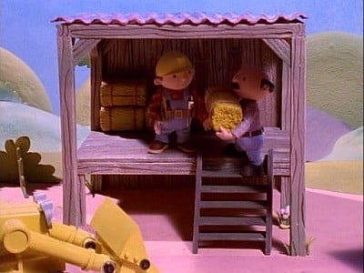 Bob and the machines have to repair Farmer Pickles' barn which is in danger of collapsing. Farmer Pickles is gathering the haystacks. Everything has to be done ...