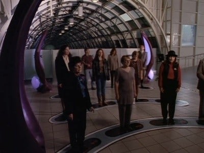 The Taelons introduce interdimensional travel to human customers. A young deaf-mute boy and his mother become separated during their travels through the portal....