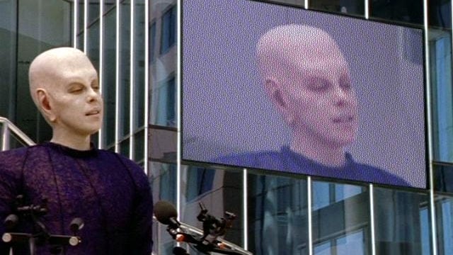 A holographic image of Rayna, who was consumed by an alien probe, tells Augur that the Taelons are dismantling the probe which will kill her, and they will lear...