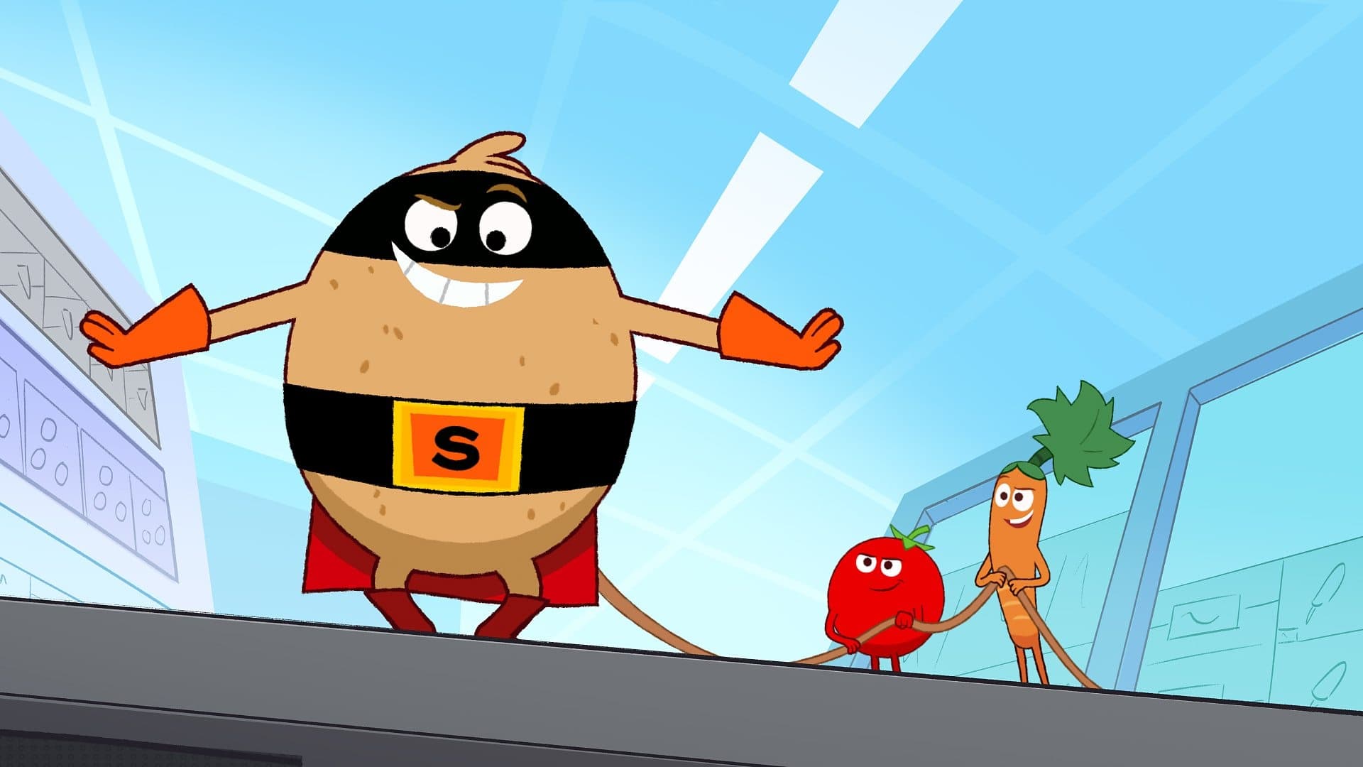 Supertato Overview: Supertato is a CGI-animated children's series about a potato who transforms into a superhero to save his town from various food-themed villains. Genre: Animation, Adventure, Comedy Creators: Mark Hickman (creator), Richard Taylor and Mike Disorenzo (producers) Background: Supertato is an original creation and not based on any previous series or books. Target Audience: The show is aimed at preschoolers and young children. Plot: In the town of Taterville, a superhero potato named Supertato defends its residents from the evil schemes of food villains like Sour Sprout, Wilt-Walter, and Rotten Ronnie. Along with his best friend, Fiona the Frog, they embark on exciting missions to keep their town safe and delicious. Main Characters: 1. Supertato - A brave and resourceful potato who transforms into a superhero to protect Taterville. 2. Fiona the Frog - Supertato's loyal friend and sidekick, who helps him on his adventures. 3. Sour Sprout - The main antagonist, a grumpy and sour-tasting pea who creates mischief in Taterville. 4. Wilt-Walter - A decaying cucumber who enjoys spreading rot and wilting to other vegetables. 5. Rotten Ronnie - A putrid tomato with a bad attitude, always causing trouble for Supertato and his friends. Production Company: Pukeko Pictures in collaboration with Sinking Ship Entertainment Voice Cast: The voice cast includes Mark Hickman as Supertato, Tabitha St. Germain as Fiona the Frog, and Kate McKinnon as Sour Sprout. Reception: Critics have praised Supertato for its engaging storylines, colorful visuals, and strong moral messages, making it an excellent addition to preschoolers' TV viewing. Seasons and Episodes: The first temporada consists of 26 episodes and premiered on Nickelodeon in February 2022. A second temporada has been announced but not yet released.